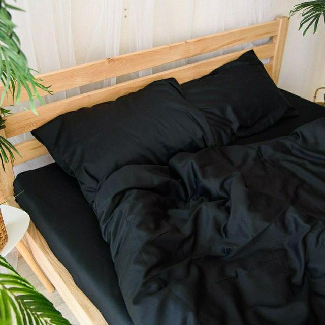 Сімейний комплект постільної білизни в однотонному чорному кольорі