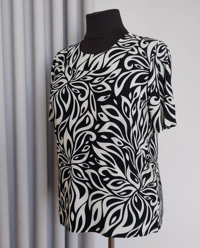 Жіноча блузка чорно-білого кольру з короткими рукавами в з 52 по 64 р