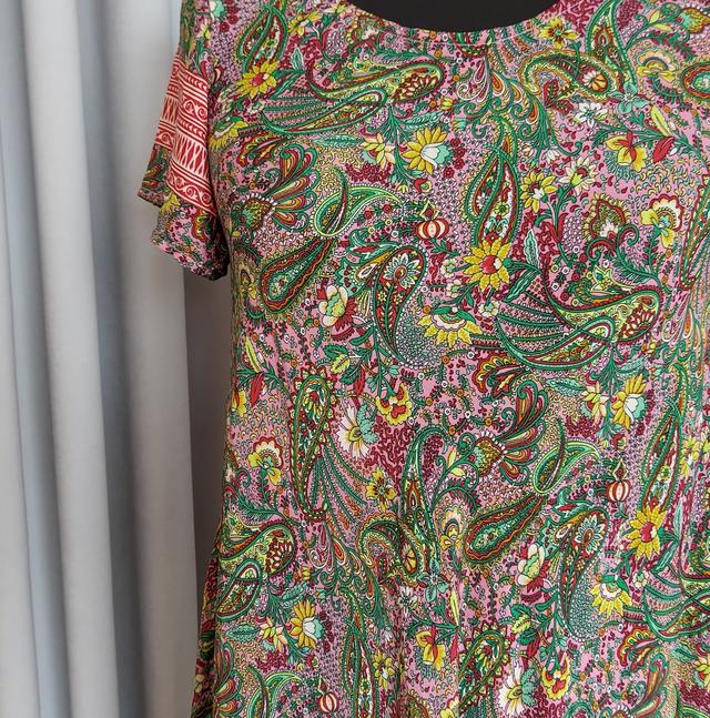 Жіноче довге плаття трапеція з круглим вирізом горловини та короткими рукавами. Плаття без підкладки.